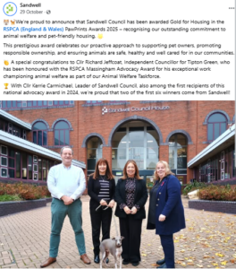 This year Councillor Richard Jeffcoat from Sandwell “won” this award after being nominated by someone from Sandwell council. I put in a freedom of information request for the submission of his entry, as well as asking if anyone from Sandwell had attended the sickly selfie laden “awards” dinner at a hotel in Leeds at £80 per head as reported on the RSPCA website. The council have so far been very coy in delaying the request, but I will be chasing this until they cough up the information as to whether taxpayers money was spent on this shite.