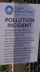 Once again this disgraceful environmental terrorist water company make the headlines for discharging raw sewage into controlled waters, this time several miles of The Stourbridge Canal. Though this canal is controlled between locks between The Bonded Warehouse towards the main town and Stourton, it descends into The Staffs and Worcester canal. There are fears that it may have reached that far.